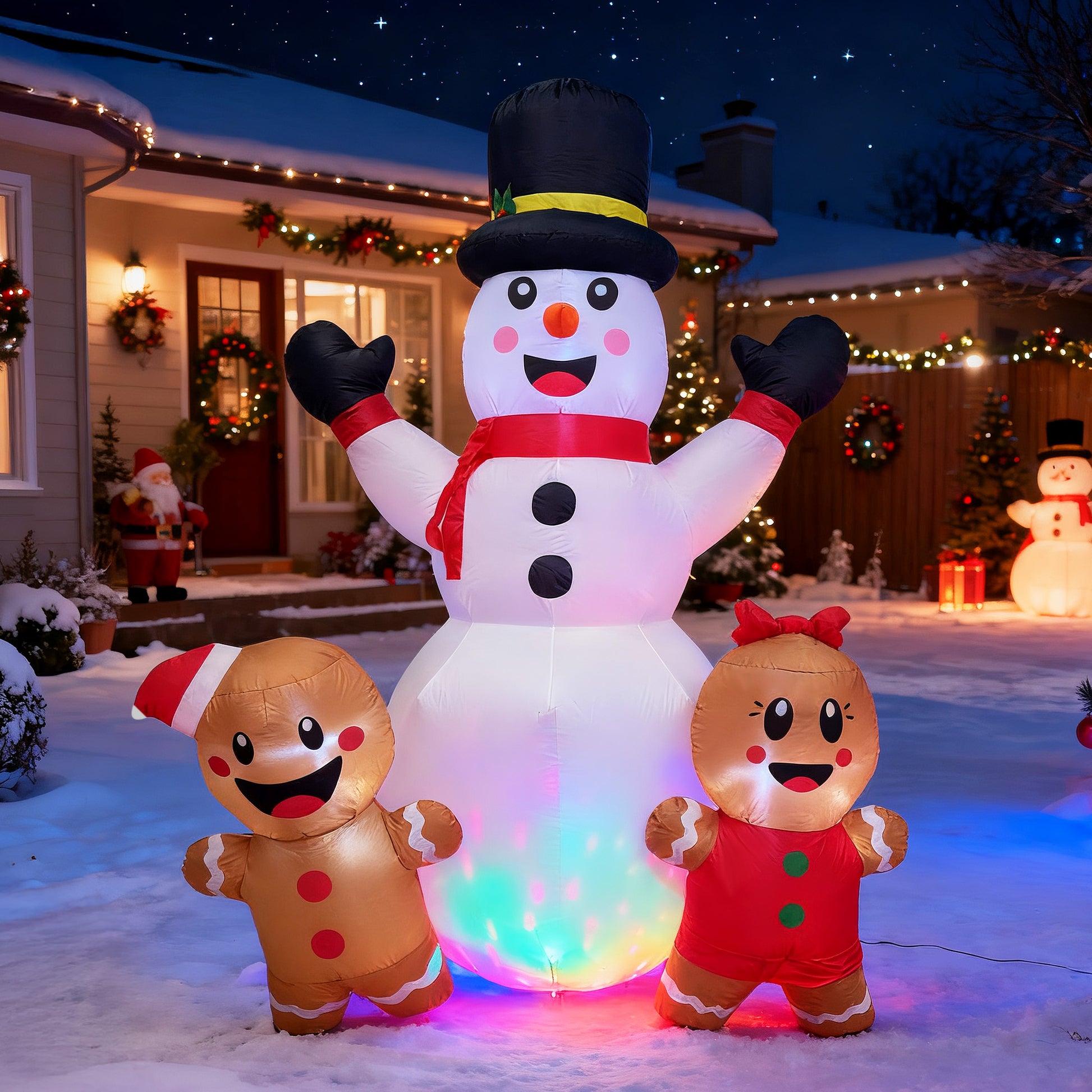 BeePrincess 7FT Christmas Inflatable Snowman & Gingerbread Men Set - Outdoor LED Decor with Adorable Trio for Yard, Garden Winter Decorations