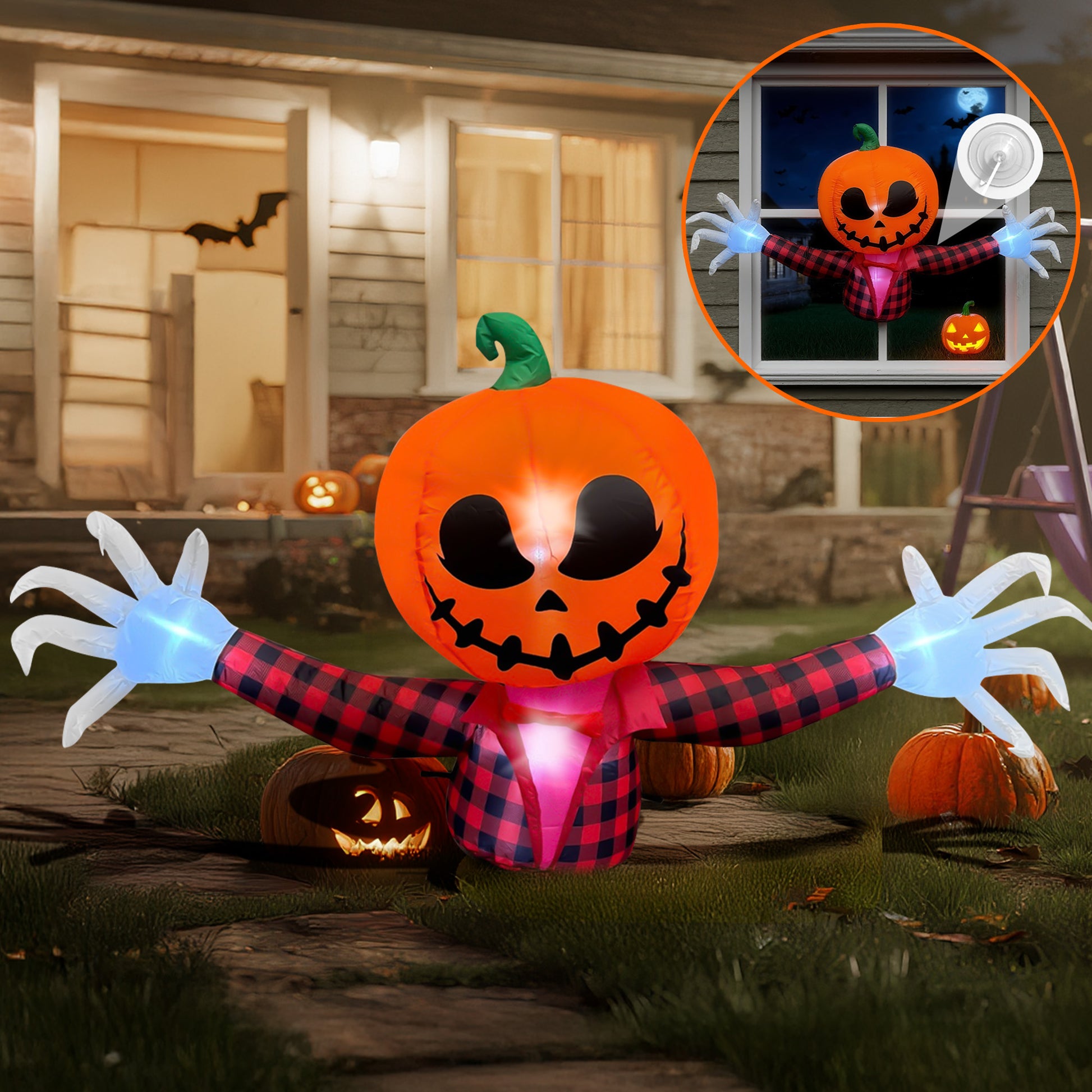 - Eye-Catching Design - Features giant inflatable Jack-o'-Lanterns, floating ghosts, witches on broomsticks, and spooky bats, creating a thrilling Halloween atmosphere.