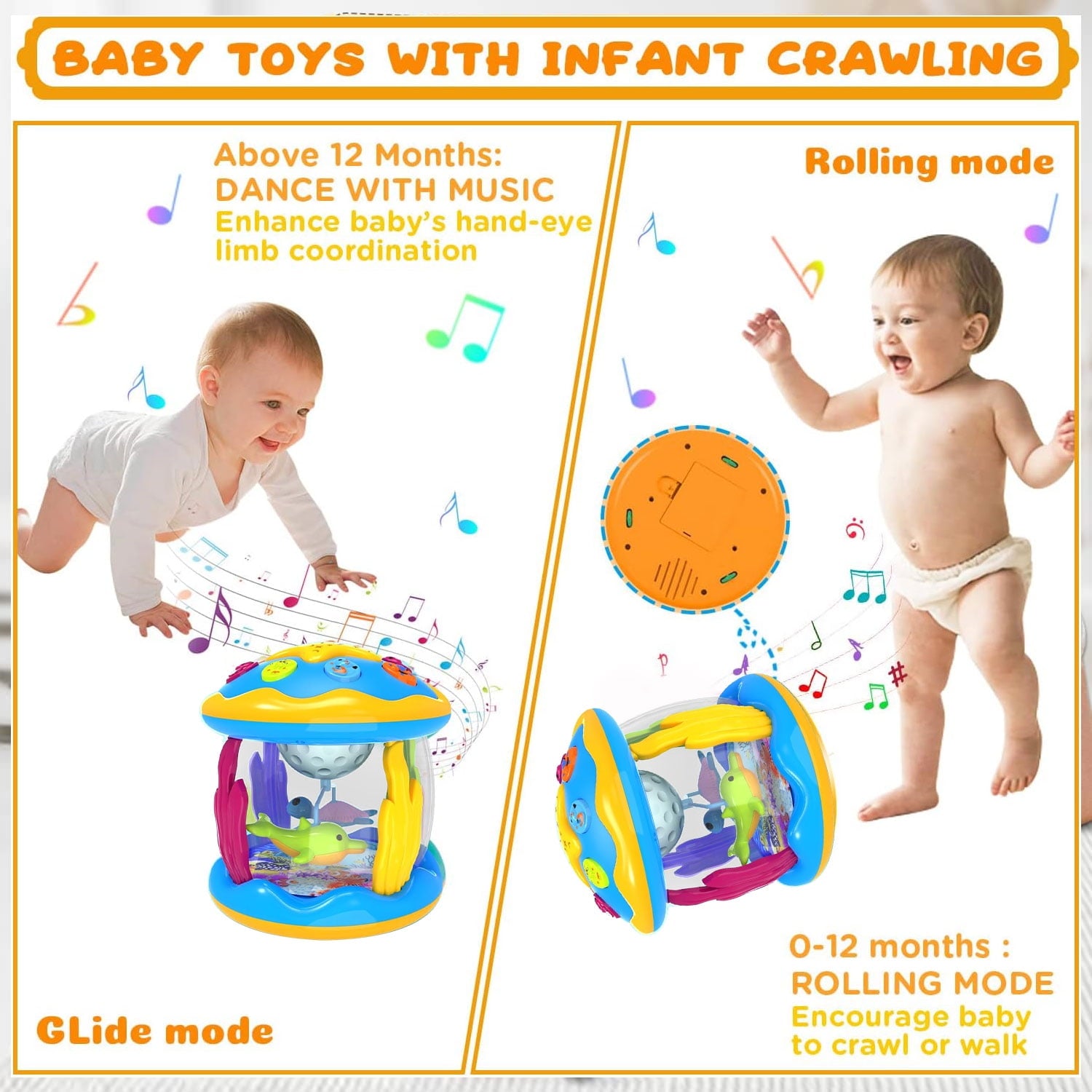 BEEPRINCESS Musical Learning Toys for 6-12 Months, 4-in-1 Ocean Rotating Star Light Projector, Sensory Crawling Toys for Infants, Babies, and Toddlers