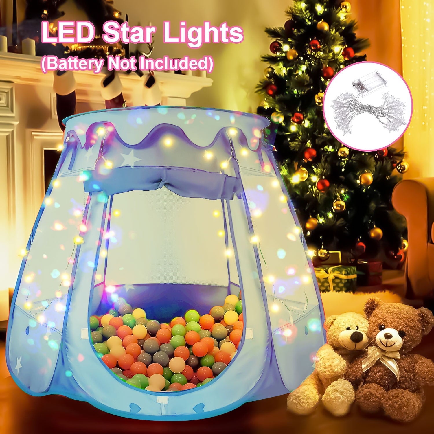 BEEPRINCESS Princess Playhouse Tent for Toddlers and Girls, Indoor & Outdoor Pop Up Play Tent for Kids, Foldable Ball Pit with Carrying Bag, Birthday Gifts for 1-3 Years Old Toddlers and Girls, Blue