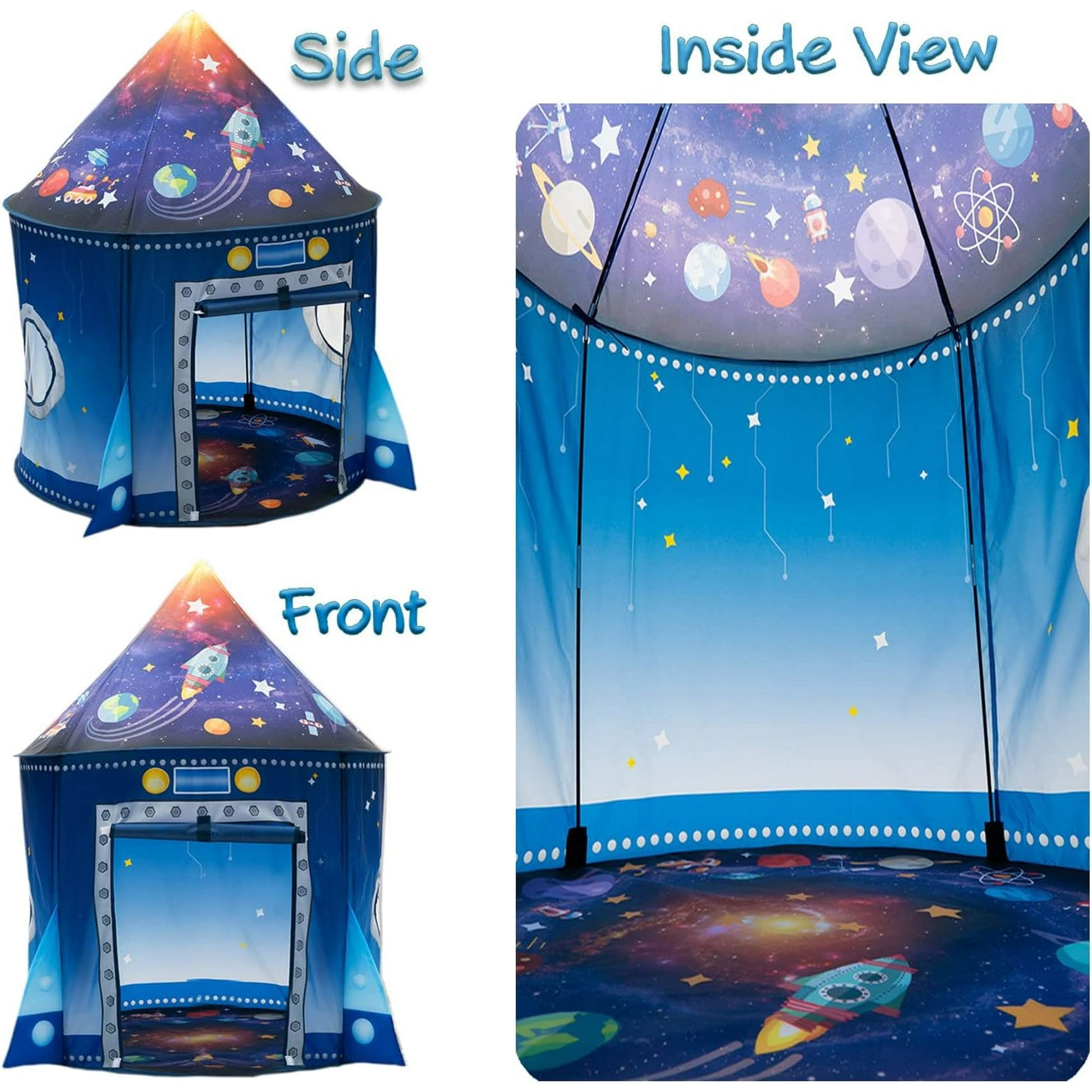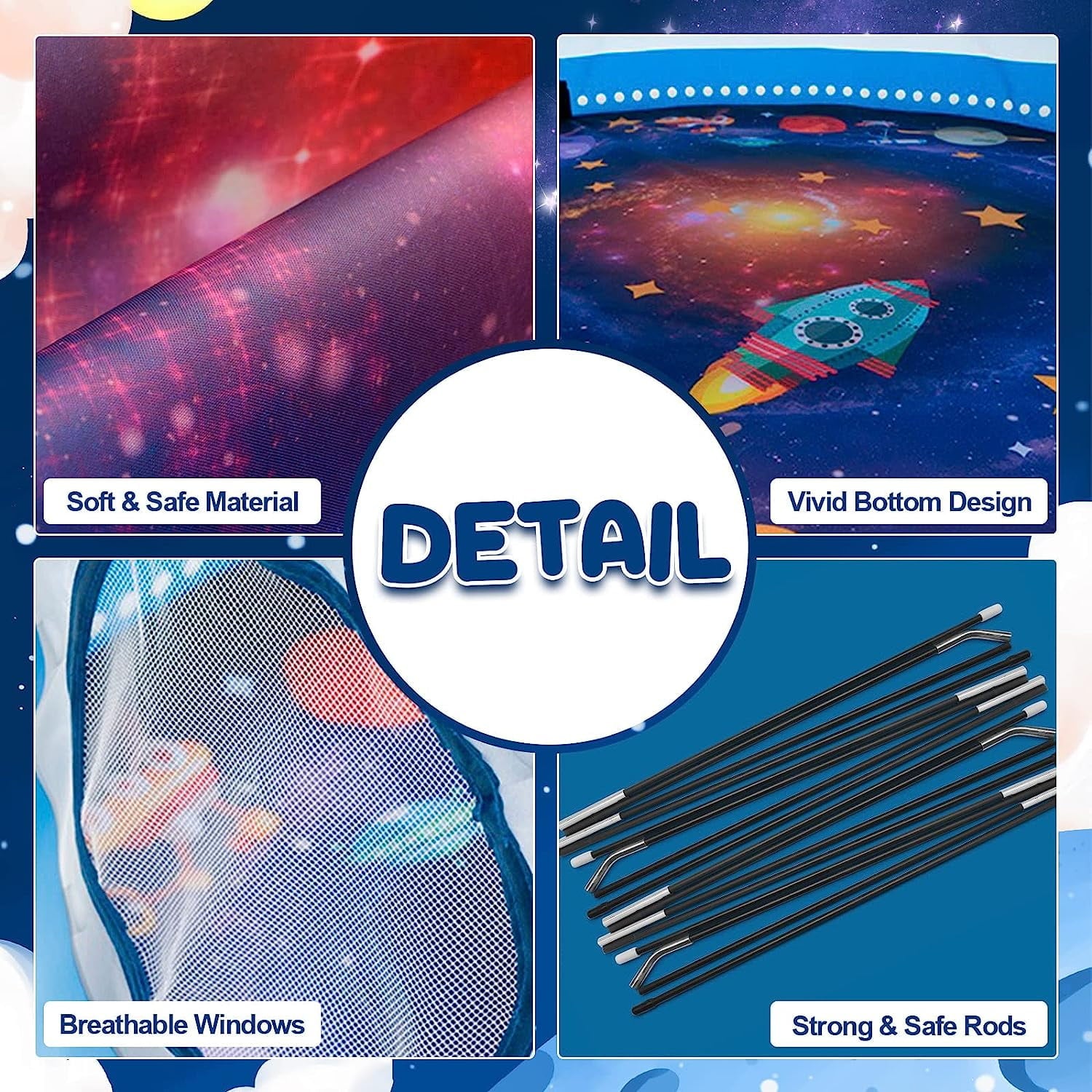 - 【Your Space mission Is Ready to Start】Make your child imagine being an astronaut in a universe world. Open the rocket tent. Now you can start your space adventure and explore outer space.With the shape of spaceship filled with shiny stars and objects, they will even be delighted to share the space tent and fort with siblings and friends while taking on roles such as astronauts, captains, aliens, and so much more.